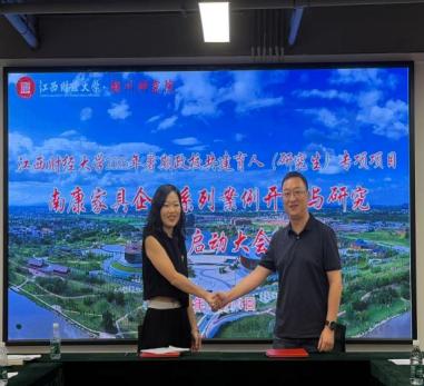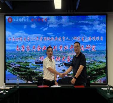 随着各项合作共识的逐步凝聚,现场迎来了庄重而热烈的签约仪式,项目组成员分别与南康家居产业服务中心、全球通家具、七喜家居、南康家具新中心、富龙皇冠、爱扬家具、城发智能制造、团团圆家具、仟亿酒店家具等项目代表郑重签署产学研合作意向书。